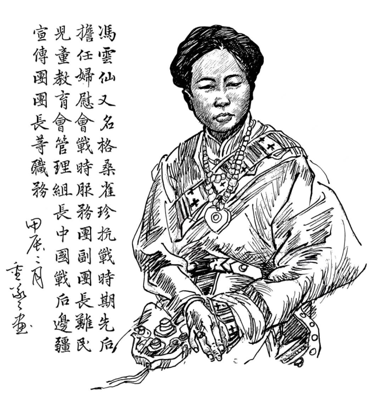 1938年4月7日,“蒙藏回族聯(lián)合慰勞抗戰(zhàn)將士代表團”組成,馮云仙為康藏代表之一。4月8日,她隨代表團出發(fā)到平漢、津浦兩戰(zhàn)區(qū)慰勞抗日將士。23日,馮云仙在“國民外交協(xié)會歡迎蒙藏回代表團”大會上致辭,充分表達了團結民眾及擁護抗戰(zhàn)之摯誠。4月24日,“中國戰(zhàn)時兒童保育會”派出的第二支前線搶救隊,由保育委員會副主任唐國楨和宣傳委員會委員徐鏡平率領,從武漢專程趕往開封、鄭州,負責搶救這一帶戰(zhàn)區(qū)的難童。馮云仙擔任第一分隊隊長,率領部分成員和醫(yī)護人員前往抗日戰(zhàn)爭前線的河南鄭州,接收約1700余名難童回漢口。武漢保衛(wèi)戰(zhàn)后期,華中戰(zhàn)局吃緊,抗敵后援委員會在武漢組織成立了“戰(zhàn)地兒童搶救服務團”,馮云仙擔任副團長。馮云仙冒著敵機轟炸的煙火和機槍掃射的危險,“赴前線搶救了一批兒童來漢,又在當?shù)厥杖莺蟪分y童,成立西康教養(yǎng)院欲撤至西康”。