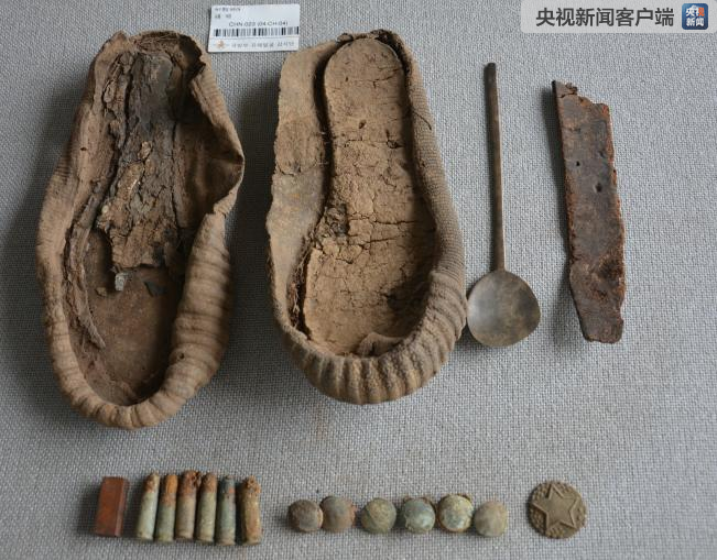 其他遺物:鐵碗1個(gè)、子彈5個(gè)、鞋底2只、殘缺碎片。