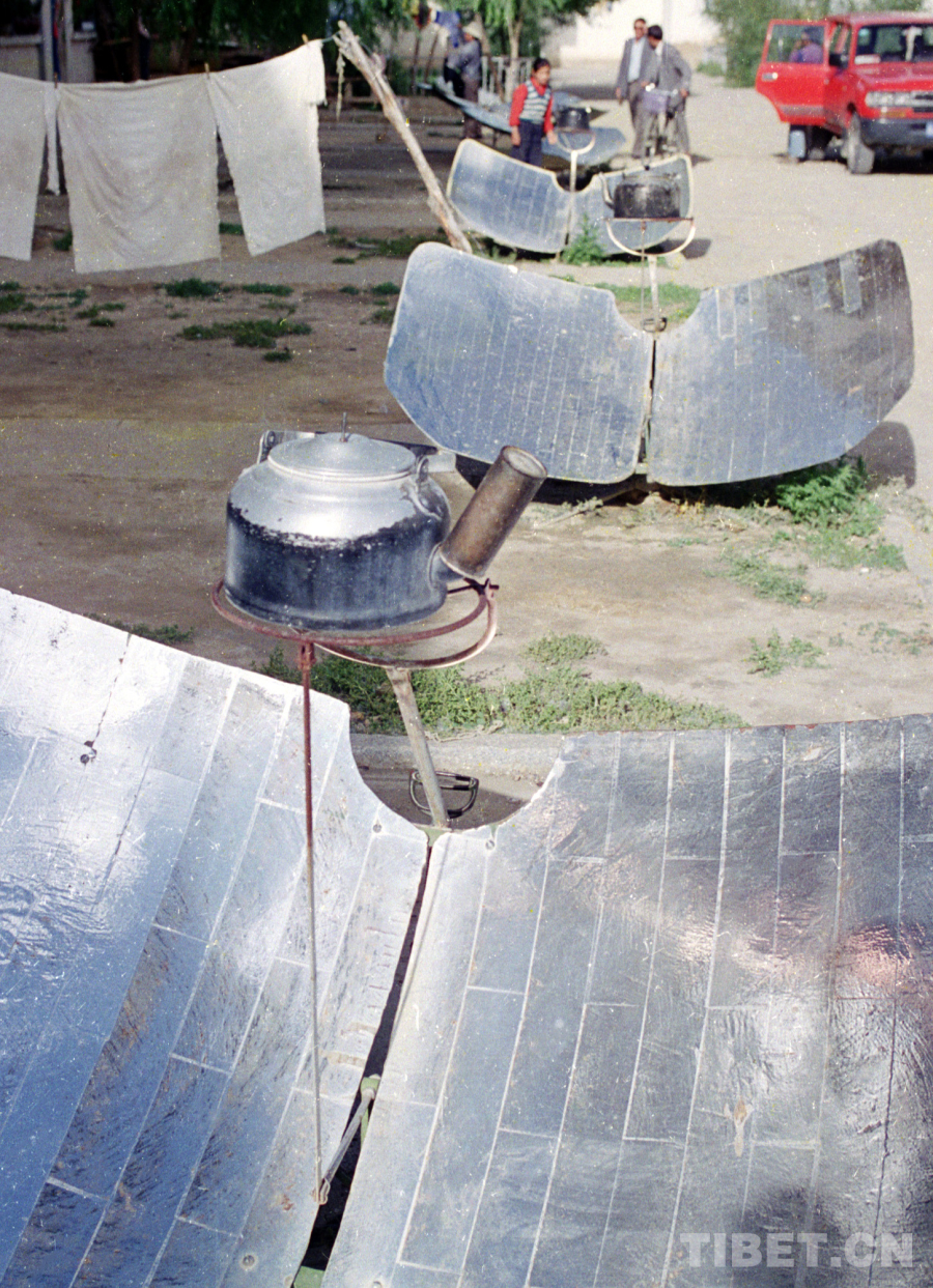 這讓我不禁想起1987年,我沿著青藏公路一路采訪進(jìn)藏,在藏北高原房前屋后,見到大量正在使用特殊燒水裝置太陽(yáng)灶的情景。