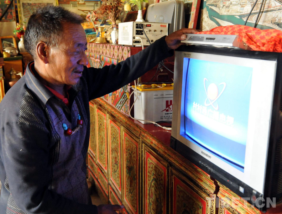 這是尼瑪縣文部鄉(xiāng)南村農(nóng)民次成旦增在家里使用光伏發(fā)電設(shè)備,收看“村村通”廣播電視(唐召明2009年攝)