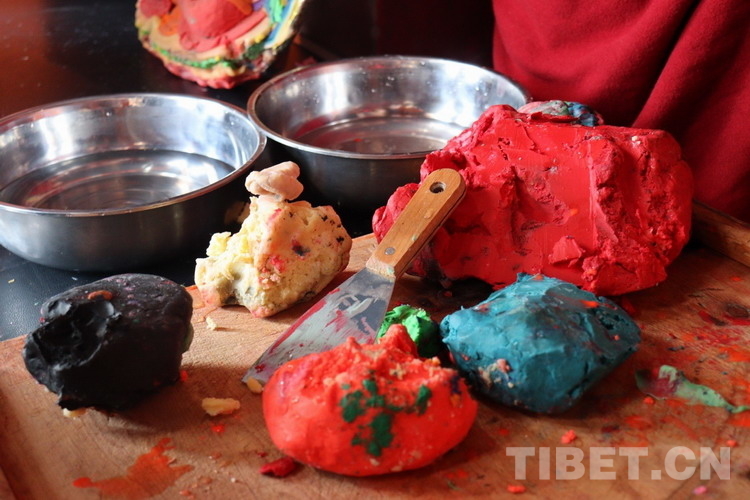圖為經(jīng)過顏料加工上色用來制作酥油花的酥油 攝影:澤仁措姆