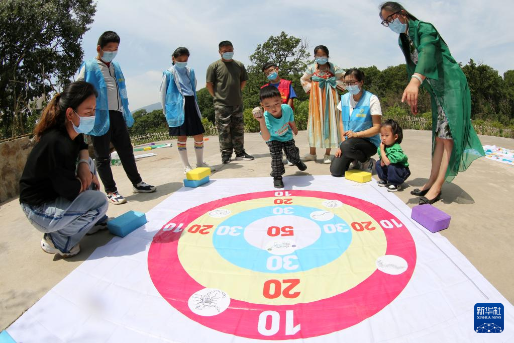 5月28日,在江蘇省連云港市連云區(qū)連島街道,孩子們?cè)隗w驗(yàn)端午習(xí)俗“射五毒”。新華社發(fā)(朱華南 攝)