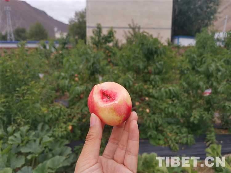 “這個(gè)看著不大,但是極甜,汁水很足。”身著一身迷彩工作服的尼木縣卡如鄉(xiāng)黨委委員王榮華隨手摘下一只桃子給記者品嘗,并告知“放心吃,都是有機(jī)種植的?!币豢谝?,口感果然相當(dāng)好。
