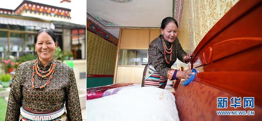 拼版照片:左圖為西藏阿里地區(qū)札達縣札布讓村村民金珠德吉在自家的家庭旅館;右圖為金珠德吉在家庭旅館里打掃衛(wèi)生。古格王國遺址坐落于札布讓村境內(nèi)。近年來,隨著札達縣“旅游興縣”政策的推進,當?shù)卮迕袂山琛扒旯鸥駳v史”大做文化旅游文章,每年吸引眾多游客前來參觀,金珠德吉就勢經(jīng)營起家庭旅館?,F(xiàn)在,金珠德吉的家庭旅館已有30多個床位,因設施完善、衛(wèi)生良好還被村里評為“金星級”家庭旅館。見到金珠德吉的家庭旅館生意火爆,村民們紛紛效仿。如今,這個只有36戶144人的小村莊有32戶人家都開了家庭旅館(7月26日攝)。 新華社記者 詹彥 攝