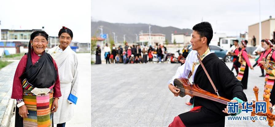 拼版照片:左圖為西藏日喀則市拉孜縣查務鄉(xiāng)明瑪村村民倉瓊(左)和兒子群培次仁;右圖為拉孜縣民間藝術(shù)團在明瑪村易地搬遷點為村民表演。明瑪村舊村交通不便,資源匱乏,自然環(huán)境惡劣,發(fā)展和脫貧受到制約。2016年,當?shù)卣?jīng)多次規(guī)劃研究,在征求村民意見后,確定將明瑪村整村搬遷。2016年10月,倉瓊和家人搬遷到了明瑪村新村。新村交通便利,文化休閑廣場、活動室、學校等基礎設施完善。倉瓊和家人商量后,在新村開了一家小商店,一年有1萬多元的收入,再加上村里養(yǎng)殖專業(yè)合作社的分紅,倉瓊一家的日子越來越好(8月2日攝)。 新華社記者 詹彥 攝