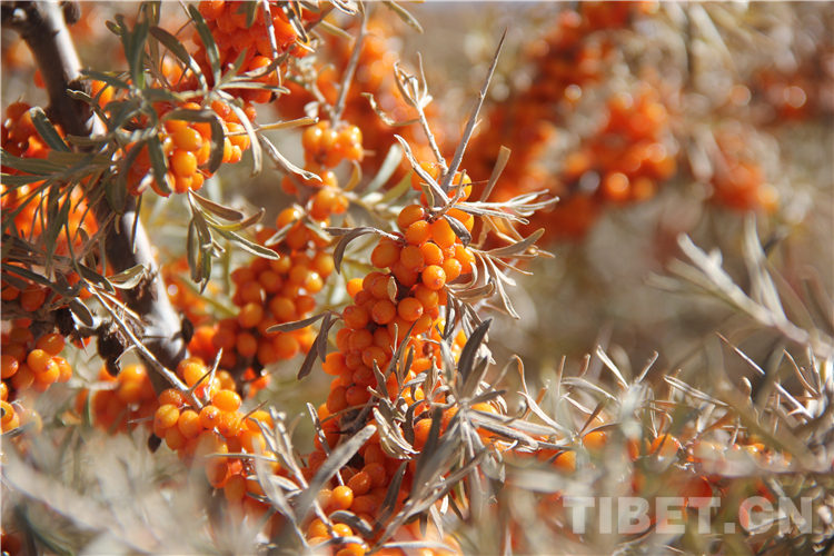 中國(guó)西藏網(wǎng)訊 在西藏自治區(qū)阿里地區(qū)札達(dá)縣,沿著象泉河兩岸,一片接一片的沙棘林郁郁蔥蔥,橙紅色的沙棘果掛滿枝頭。沙棘是一種小喬灌木,被譽(yù)為“天賜神物,高原圣果”。