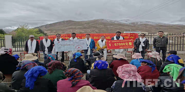 圖為西藏圣雄實(shí)業(yè)集團(tuán)有限公司在薩迦縣雄瑪鄉(xiāng)吉堆村發(fā)放農(nóng)機(jī)具 圖片由日喀則市工商聯(lián)提供