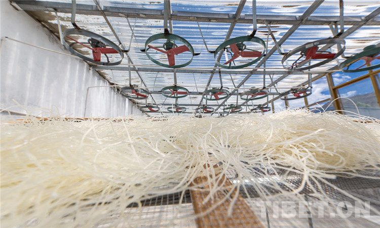 圖為合作社內(nèi)用于烘干粉條的風(fēng)扇 攝影:趙耀