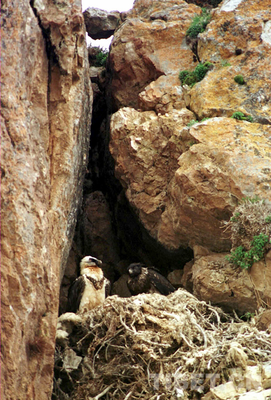 科考人員在科考中發(fā)現(xiàn),在扎西多半島西北角突兀懸崖峭壁上有一個很大的胡兀鷲雜草屋,只見雌鳥飛出飛進(jìn),在給4個月大小的雛鳥喂食。這種頭頂和后頸為白色、頭頂周圍有一圈黑羽,長有胡須、腹部為褐色的胡兀鷲,體長1米多。