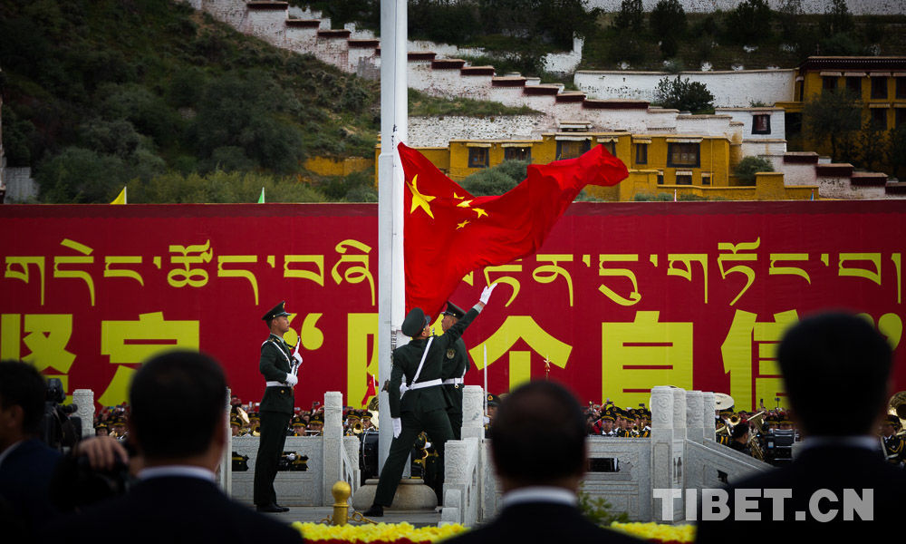 圖為2019年10月1日,西藏自治區(qū)各族各界代表慶祝中華人民共和國(guó)成立70周年升國(guó)旗儀式在布達(dá)拉宮廣場(chǎng)莊嚴(yán)隆重舉行。攝影:趙耀