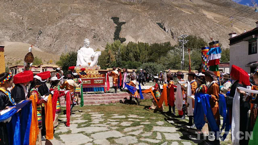 圖為藏族群眾為吞彌桑布扎塑像敬獻(xiàn)哈達(dá) 攝影:王茜