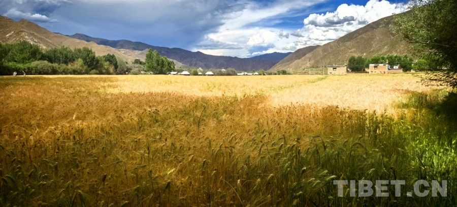 圖為強(qiáng)吉村正在大面積成熟的青稞 攝影:劉莉