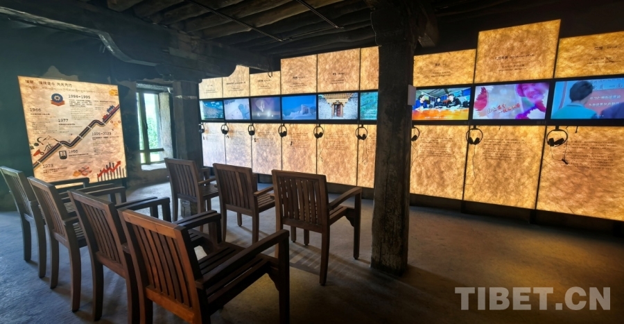 圖為強(qiáng)吉莊園公共文化活動(dòng)中心二層通過(guò)影音設(shè)備講述新時(shí)代為建設(shè)社會(huì)主義現(xiàn)代化新西藏做出杰出貢獻(xiàn)的人們的故事 攝影:劉莉
