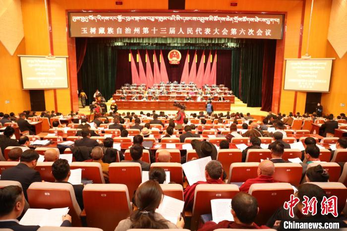 圖為青海省玉樹藏族自治州第十三屆人民代表大會第六次會議現(xiàn)場?!“?攝