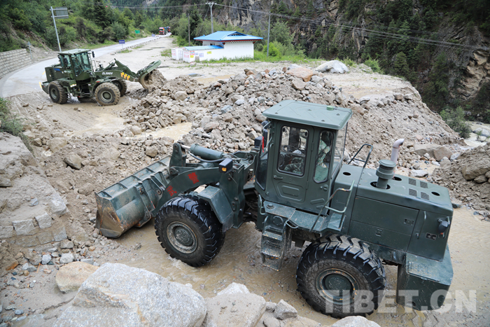 武警官兵緊急搶通川藏線泥石流災(zāi)害道路
