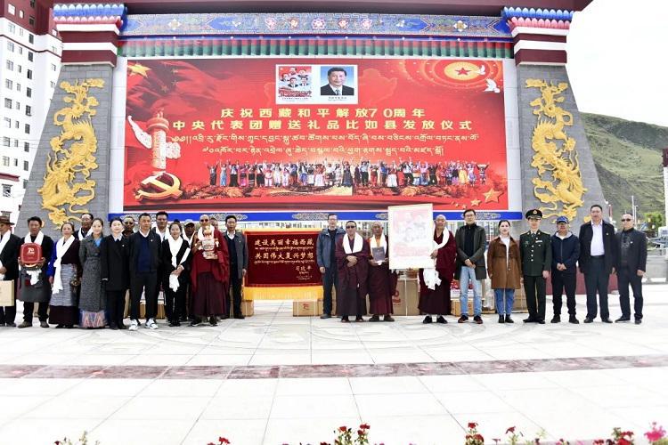 中國西藏網(wǎng)訊 為表達以習近平同志為核心的黨中央的親切關(guān)懷和全國人民的深情厚誼,出席西藏和平解放70周年慶?;顒拥闹醒氪韴F向西藏贈送多項紀念品。8月23日下午,西藏自治區(qū)那曲市比如縣隆重舉行中央代表團贈送禮品發(fā)放儀式。