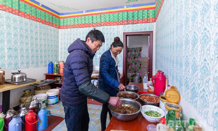 圖為楊松(左)和桑姆(右)夫妻倆正在餐館內準備飯菜 攝影:趙耀