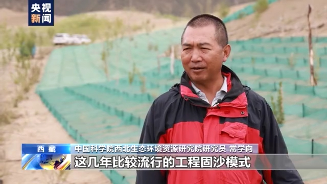 中國科學(xué)院西北生態(tài)環(huán)境資源研究院研究員 常學(xué)向:這幾年比較流行的工程固沙模式,可以大批量地、非??旖莸貋韺嵤┕こ?,再通過生物措施來把流沙固定下來。好多品種,它治沙效果非常好,長勢也非常旺。但是到了青藏高原它不見得能適應(yīng)這個青藏高原的環(huán)境和氣候。哪些品種能適應(yīng)西藏的環(huán)境和氣候條件,這樣我們有選擇地來推廣到各個治沙區(qū)和治沙點。