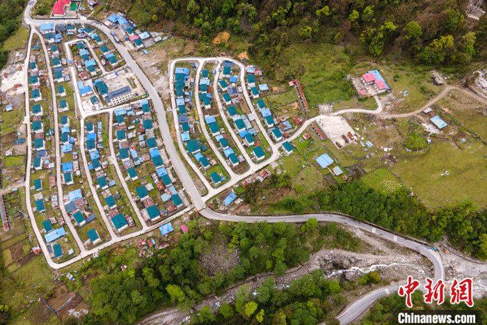 圖為5月16日,西藏墨脫公路上的達木珞巴民族鄉(xiāng)貢日村景象,該村此前為舊墨脫公路物資轉運點,被稱為“80K”。(無人機照片) 中新社記者 江飛波 攝