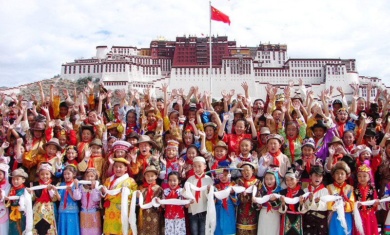 圖為拉薩市第一小學(xué)60年校慶時(shí),全校學(xué)生盛裝在布達(dá)拉宮廣場(chǎng)合影留念。(資料圖片) 記者 旦增西旦 攝