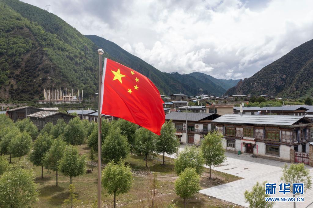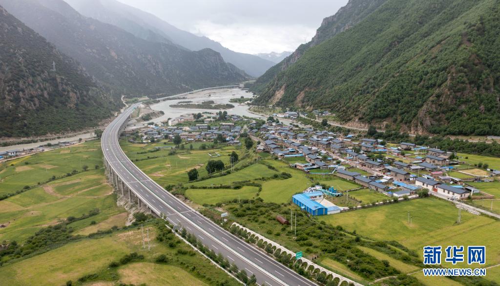 西藏林芝市工布江達(dá)縣太昭村全景(無人機(jī)照片,7月9日攝)。新華社記者 旦增尼瑪曲珠 攝