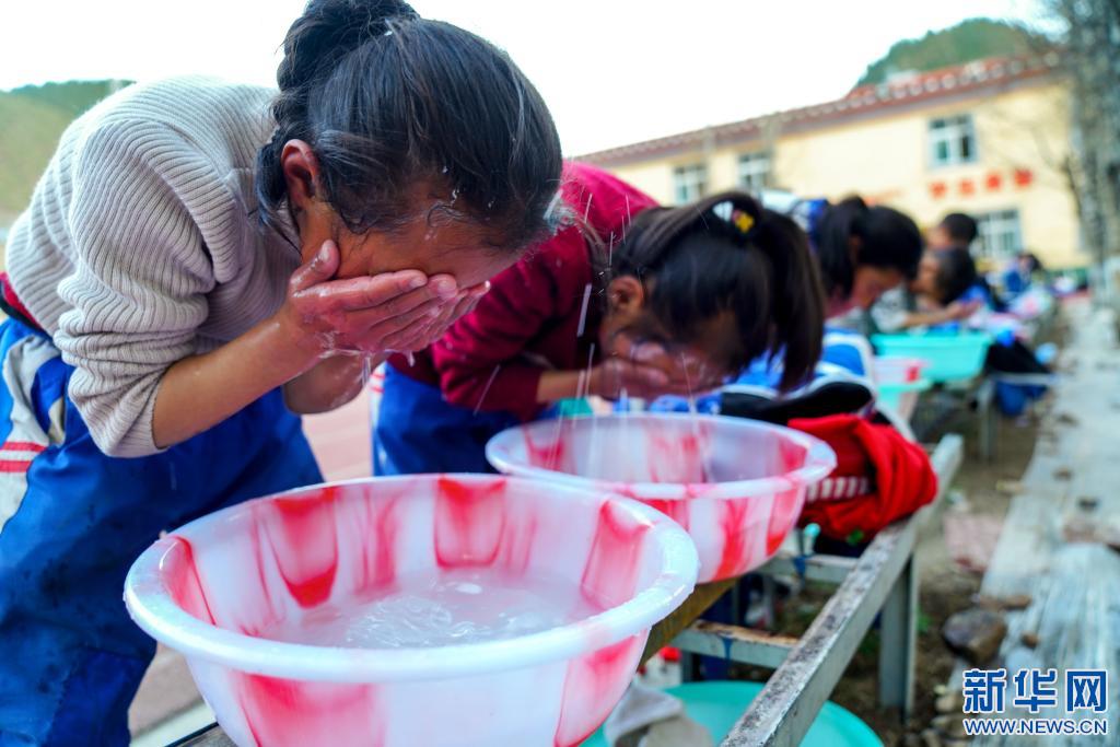 4月30日,在西藏昌都市類烏齊縣桑多鎮(zhèn)第二小學(xué),學(xué)生們用熱水洗漱。這套熱水設(shè)施由李純民發(fā)起的“齊興”助學(xué)獎(jiǎng)勵(lì)基金捐助。新華社記者 黃臻 攝