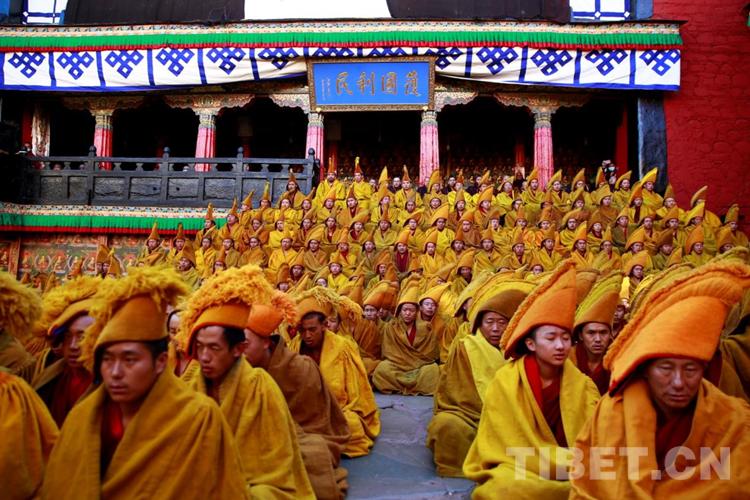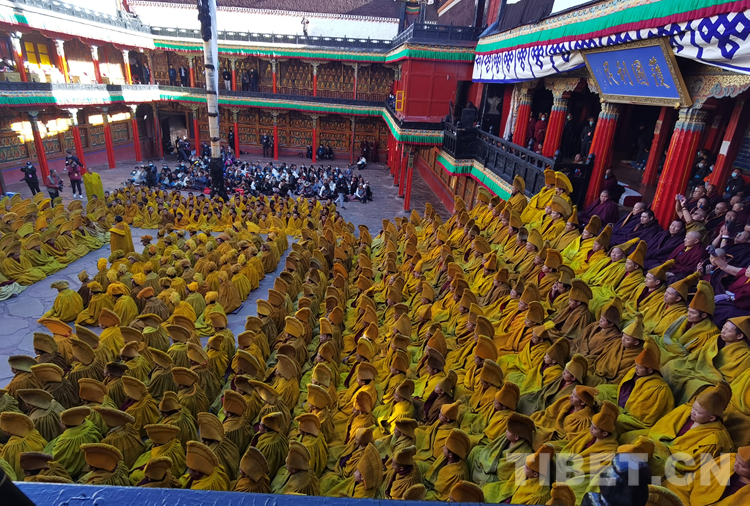 經(jīng)過數(shù)日準備,26日下午,班禪于扎什倫布寺參加嘎欽學位立宗答辯。來自西藏自治區(qū)藏傳佛教各教派的堪布、經(jīng)師等高僧以及扎什倫布寺僧眾、信教群眾等800人共赴盛會、共享法喜。
