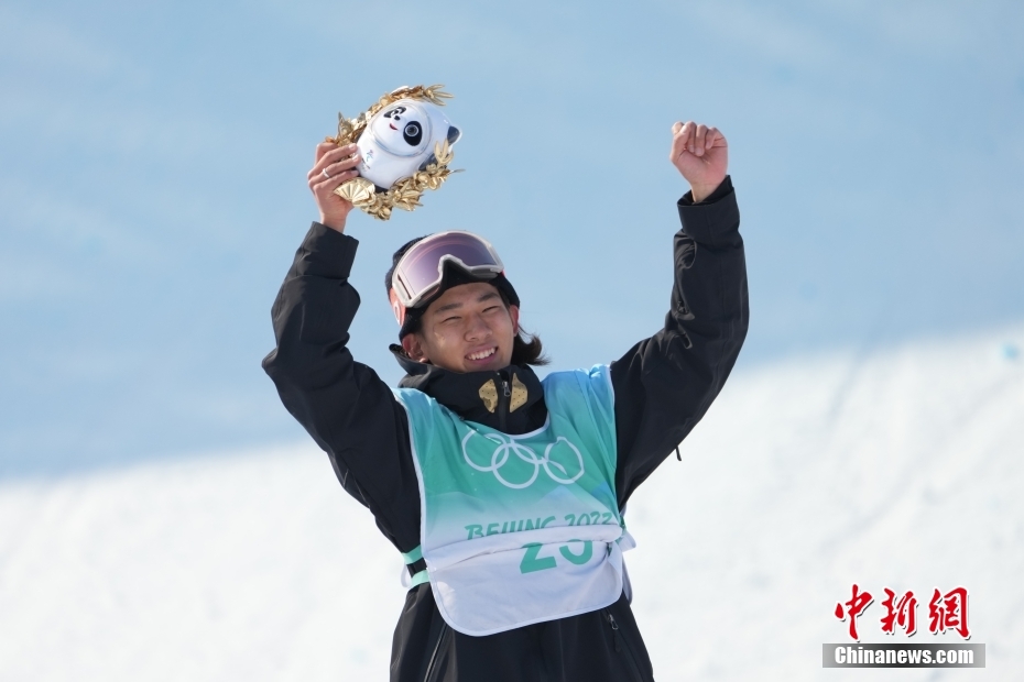 2月15日,北京2022年冬奧會單板滑雪男子大跳臺決賽在首鋼滑雪大跳臺舉行,中國選手蘇翊鳴獲得冠軍。 中新社記者 毛建軍 攝