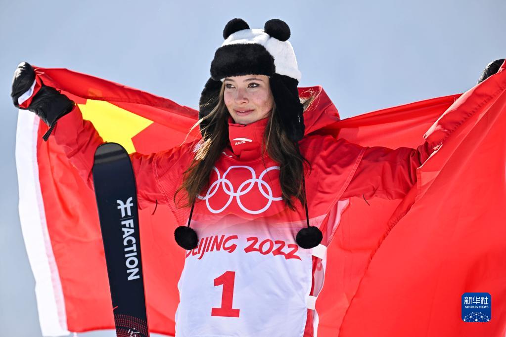 當日,北京2022年冬奧會自由式滑雪女子U型場地技巧決賽在張家口云頂滑雪公園舉行。中國隊選手谷愛凌奪得此項目金牌。