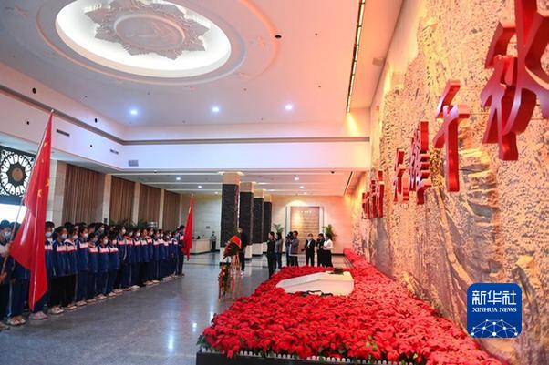 2020年9月25日,在位于山西省大同市靈丘縣的平型關大捷紀念館,工作人員向革命先烈獻花。新華社記者 楊晨光 攝