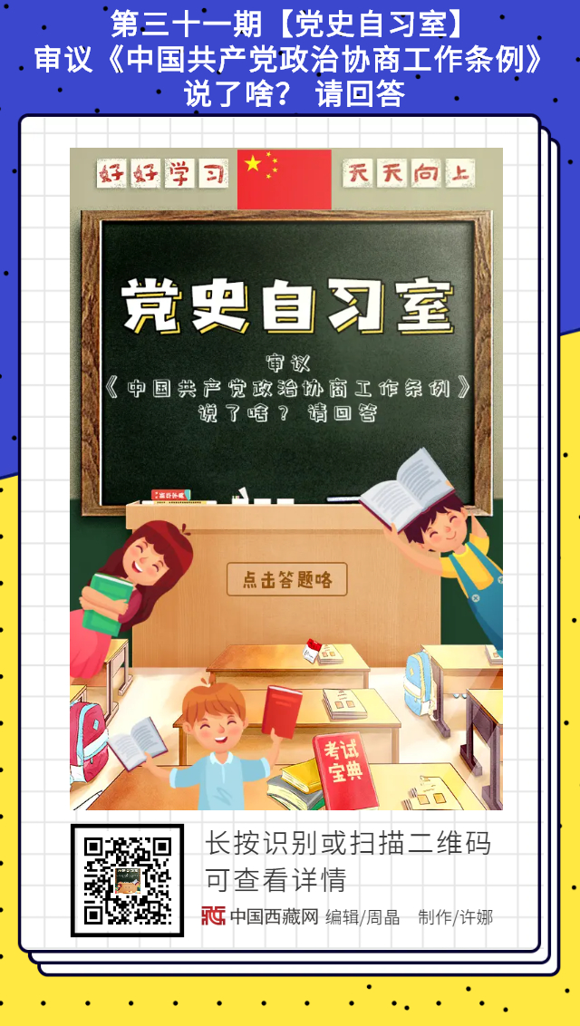 第三十一期【黨史自習(xí)室】審議《中國共產(chǎn)黨政治協(xié)商工作條例》說了啥? 請(qǐng)回答