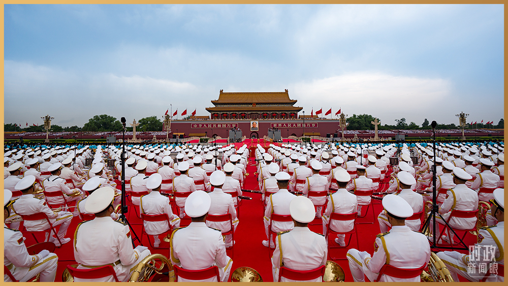 中國人民解放軍聯(lián)合軍樂團(tuán)靜待演奏開始。(總臺記者廖江衡拍攝)
