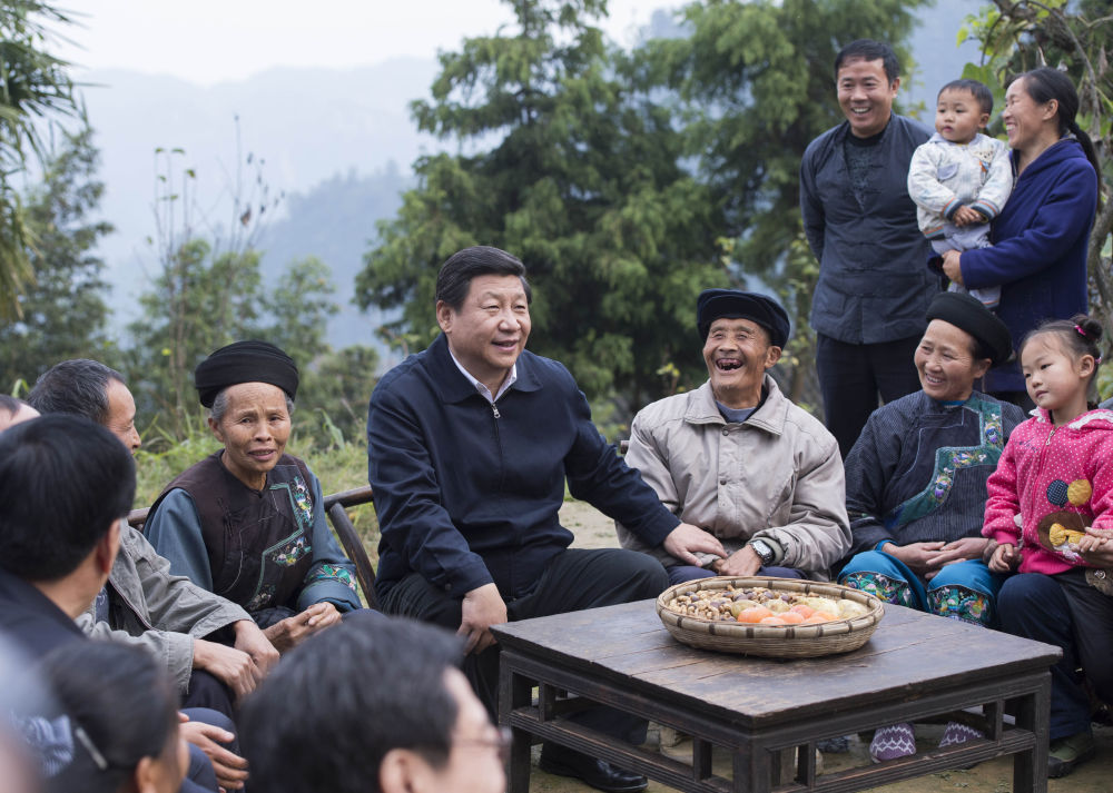 2013年11月3日,習(xí)近平在湖南湘西土家族苗族自治州花垣縣排碧鄉(xiāng)十八洞村同村干部和村民座談。
