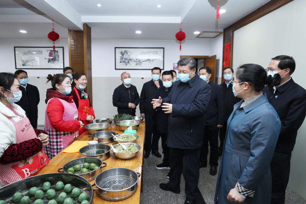 2020年3月30日,習(xí)近平在浙江湖州市安吉縣天荒坪鎮(zhèn)余村了解農(nóng)家樂(lè)經(jīng)營(yíng)和特色農(nóng)產(chǎn)品銷(xiāo)售情況。