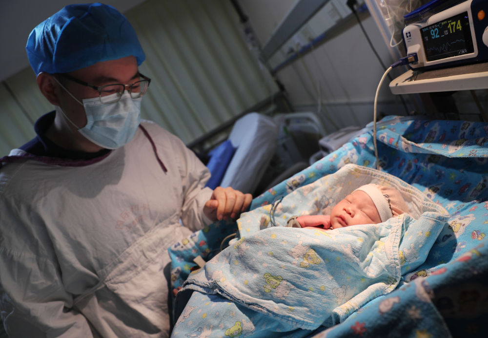 2021年7月1日凌晨,在中國(guó)福利會(huì)國(guó)際和平婦幼保健院,一位爸爸在看自己的女兒。她是該院當(dāng)日首名新生兒。