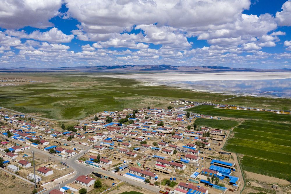 2021年7月1日拍攝的新疆巴里坤哈薩克自治縣海子沿鄉(xiāng)尖山子村(無(wú)人機(jī)照片)。