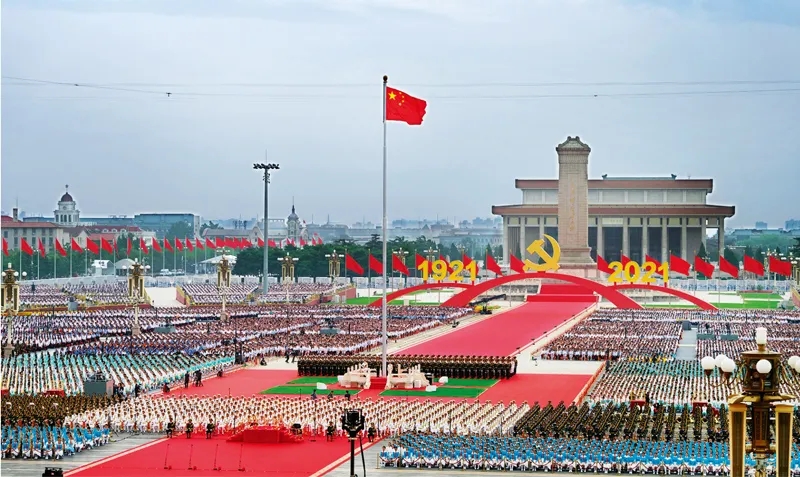 2021年7月1日上午,慶祝中國共產(chǎn)黨成立100周年大會在北京天安門廣場隆重舉行。習近平總書記在大會上莊嚴宣告,我們實現(xiàn)了全面建成小康社會的第一個百年奮斗目標。圖為慶祝大會現(xiàn)場?!±铘?攝