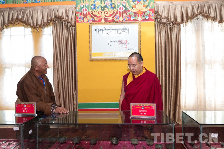 圖為2020年8月16日,班禪參觀視察嘉黎縣藏醫(yī)藥歷史文化博物館 攝影:鄭朔