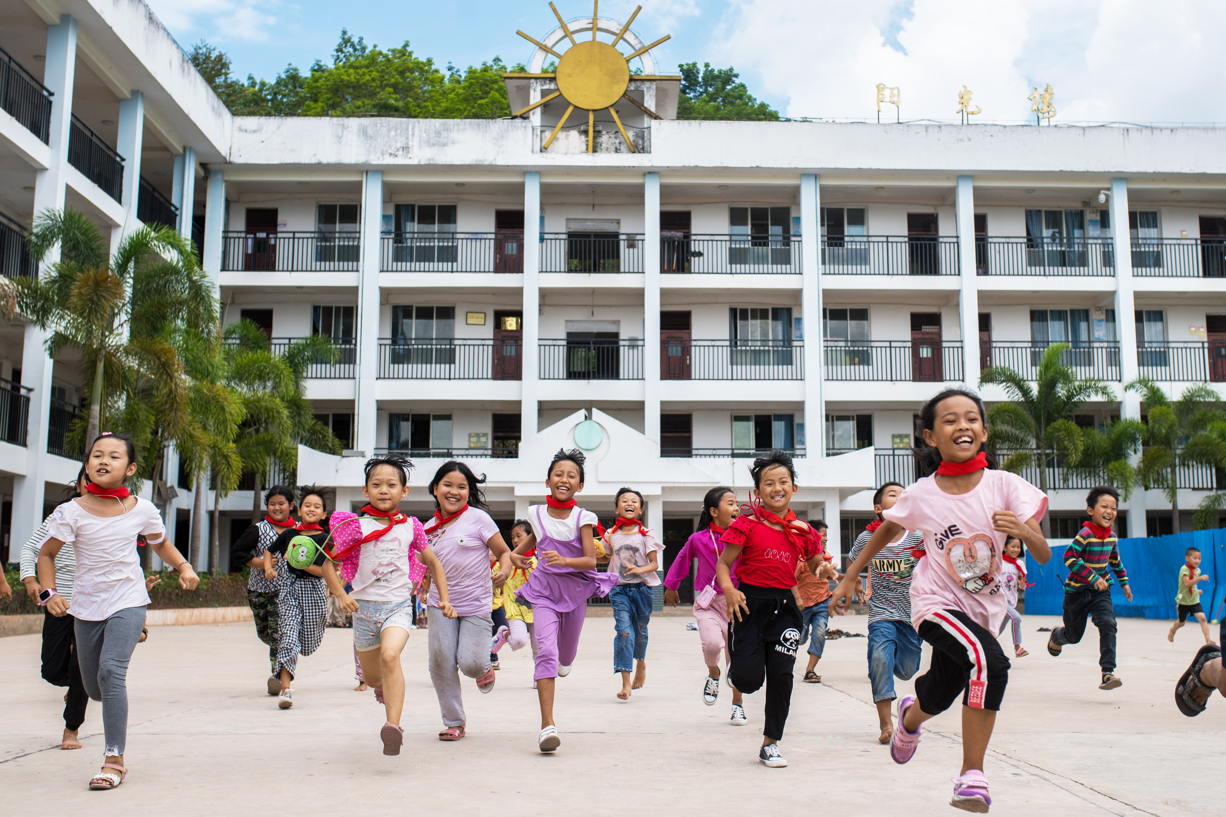 云南西雙版納基諾山基諾族鄉(xiāng)民族小學(xué)學(xué)生在跑步(2019年6月11日攝)。