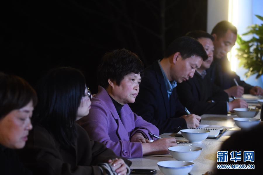 2月22日,全國人大代表、桐廬縣江南鎮(zhèn)環(huán)溪村黨總支副書記周忠蓮(左三)在桐廬縣鐘山鄉(xiāng)參加“新村夜話”討論活動。新華社記者 徐昱 攝