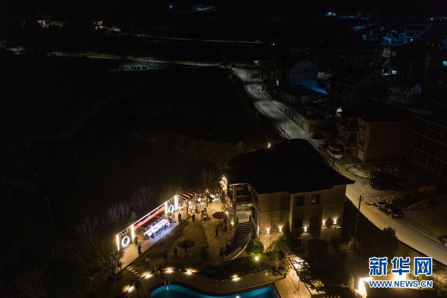 2月22日,桐廬縣鐘山鄉(xiāng)鄉(xiāng)賢代表、民宿業(yè)主代表、桐廬縣鄉(xiāng)兩級人大代表以及黨員和村民代表在鐘山鄉(xiāng)參加“新村夜話”討論活動(無人機照片)。新華社記者 徐昱 攝