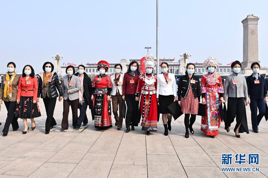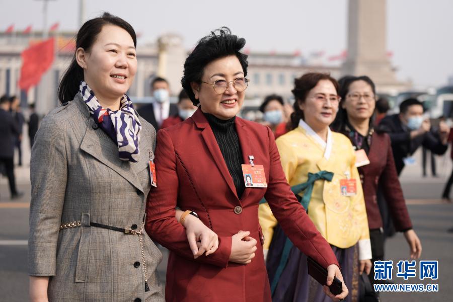 3月8日,十三屆全國人大四次會議在北京人民大會堂舉行第二次全體會議。這是女代表們走向會場。新華社記者 賀長山 攝