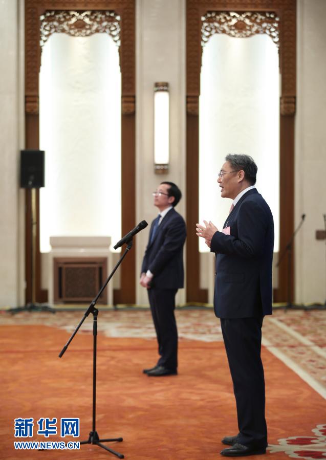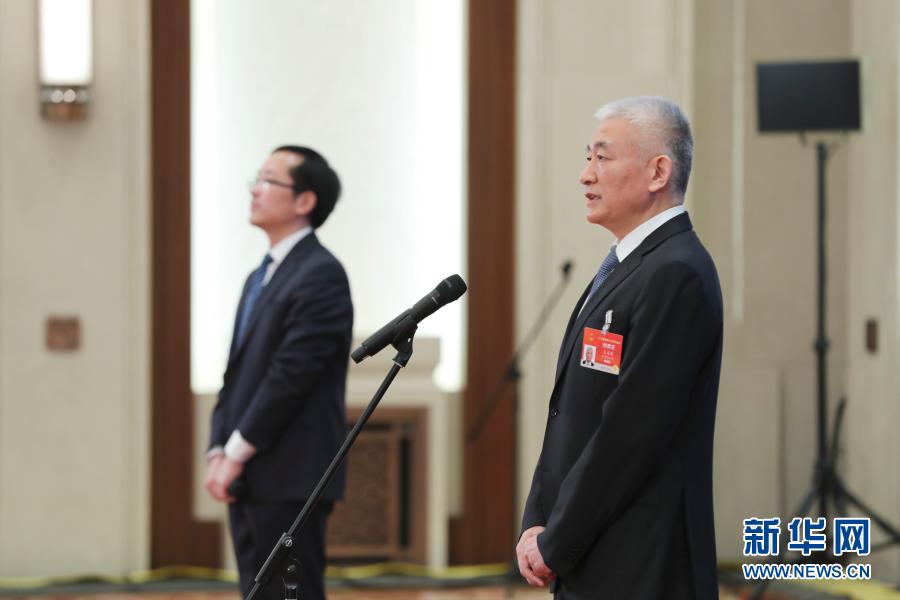 3月8日,第十三屆全國人民代表大會第四次會議舉行第二場“部長通道”采訪活動。這是科學技術部部長王志剛(右)通過網絡視頻方式接受采訪。