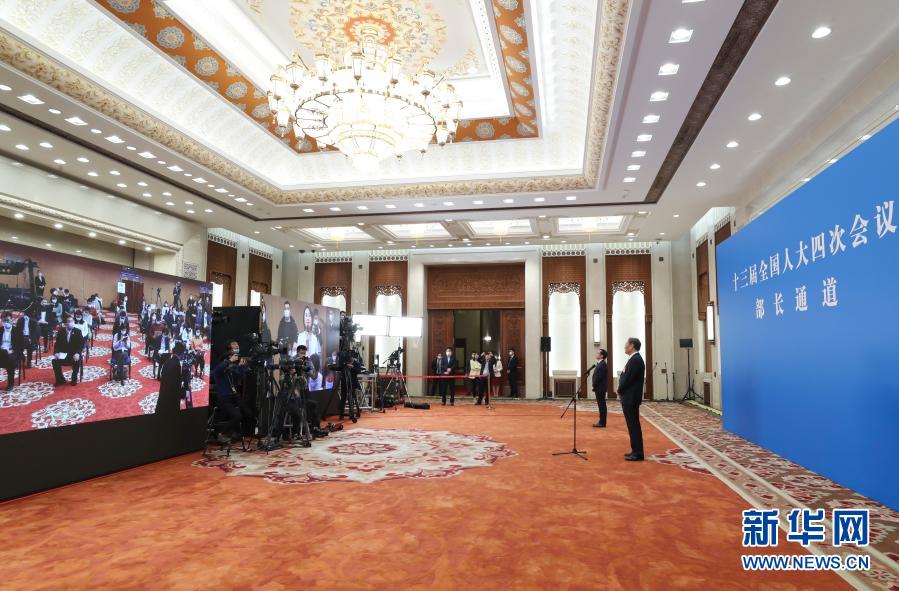3月8日,第十三屆全國人民代表大會第四次會議舉行第二場“部長通道”采訪活動。這是商務部部長王文濤通過網絡視頻方式接受采訪。