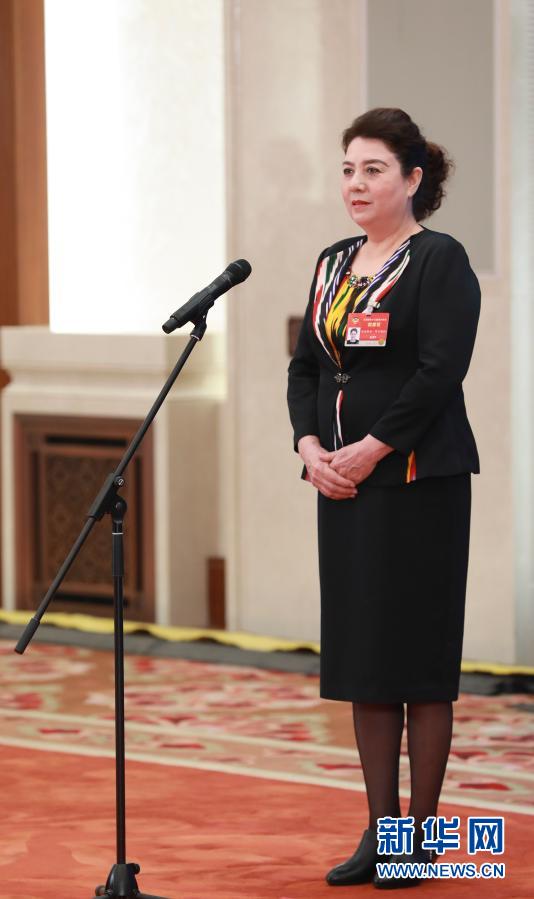 3月10日,全國政協(xié)十三屆四次會議第三場“委員通道”采訪活動在北京人民大會堂新聞發(fā)布廳舉行。這是全國政協(xié)委員古麗帕麗·阿不都拉通過網(wǎng)絡(luò)視頻方式接受媒體采訪。新華社記者 王南 攝