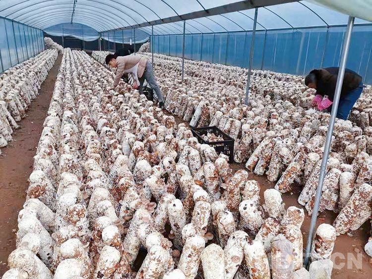 圖為新坪社區(qū)食用菌大棚 圖片由社區(qū)黨支部提供