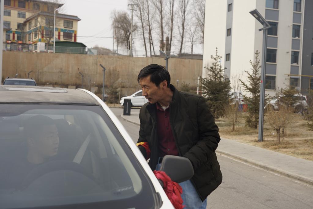 “你好,請(qǐng)不要把車(chē)停在消防通道上,往邊上停一停?!贝汗?jié)期間,青海省海東市樂(lè)都區(qū)七里店安置小區(qū)內(nèi)人來(lái)車(chē)往,52歲的李海山站在路口觀察通行車(chē)輛,維護(hù)小區(qū)車(chē)輛的停放秩序。