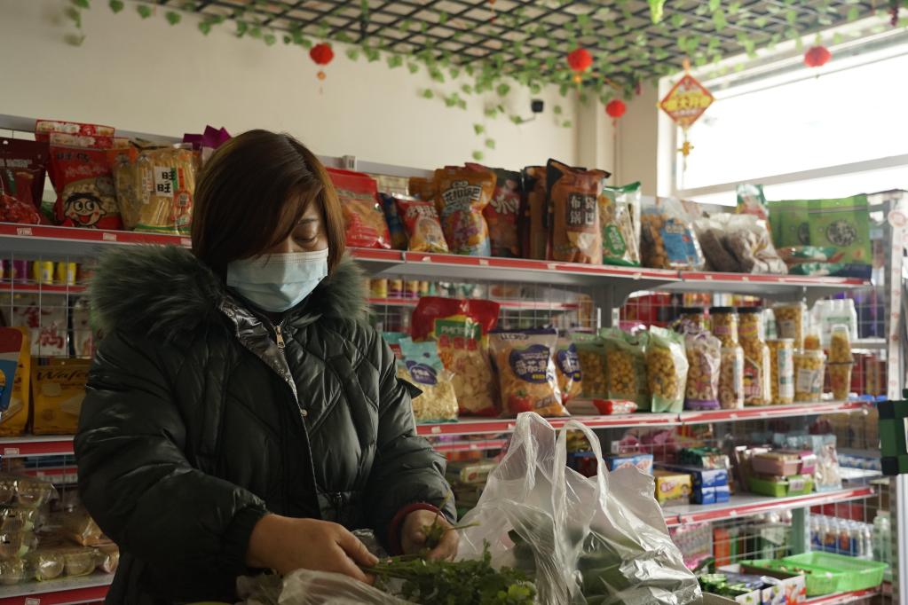 1月27日,超市老板段志英在整理售賣(mài)的蔬菜。(新華社記者 陳杰 攝)