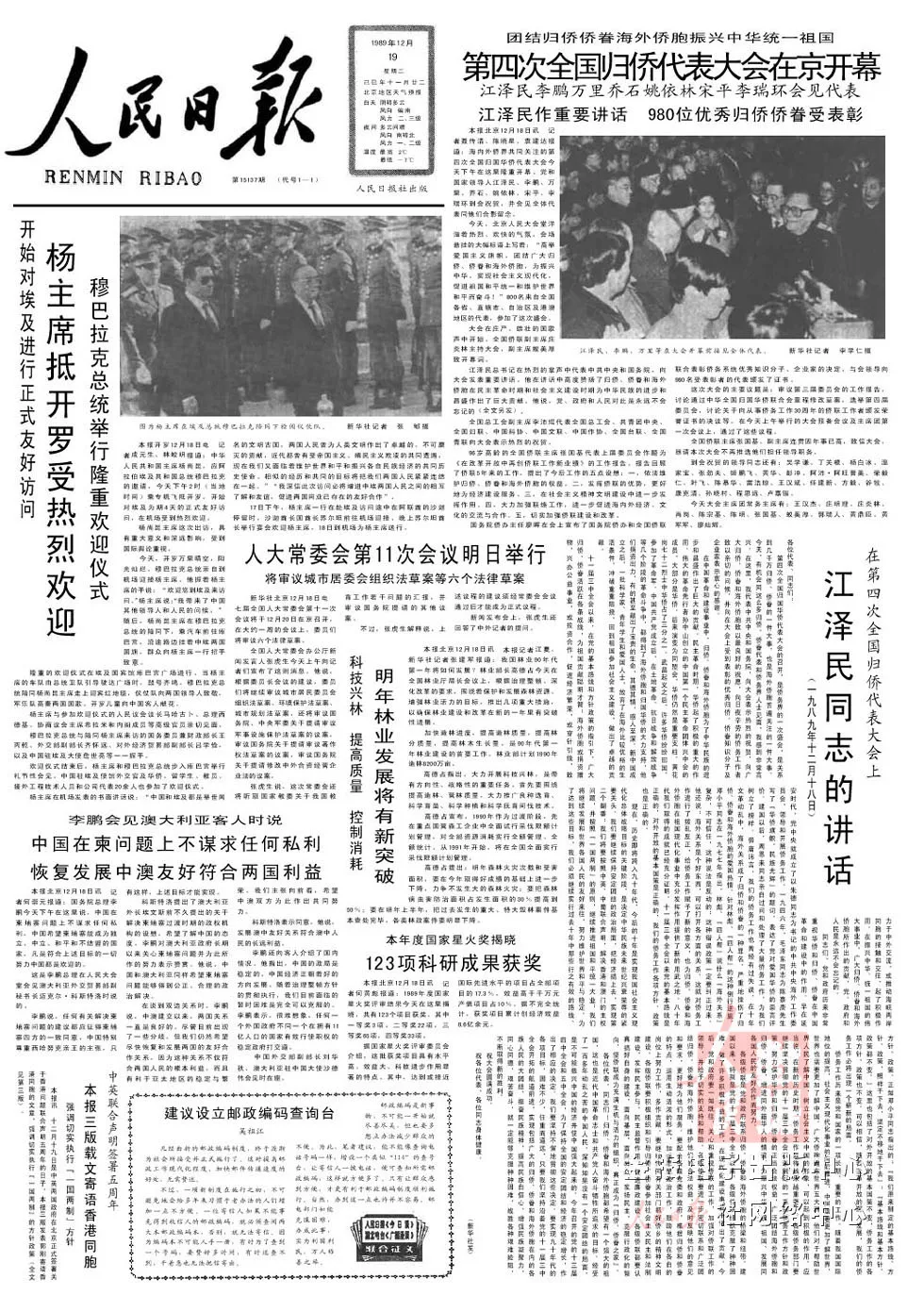 1992年,鄧小平視察南方并發(fā)表重要談話和黨的十四大的召開,標志著我國改革開放和社會主義現(xiàn)代化建設進入了新的發(fā)展階段。愛國統(tǒng)一戰(zhàn)線以鄧小平建設有中國特色社會主義的理論為指導,圍繞建立社會主義市場經濟體制,”一國兩制”方針的貫徹實施,不斷研究新情況和新問題,充分調動各族各界人士的積極性、主動性和創(chuàng)造性,形成了新的氣勢,開創(chuàng)了新的局面。開創(chuàng)我國僑務工作新局面中國是僑務資源大國,5000多萬海外僑胞廣泛分布在世界各地,3000多萬歸僑僑眷工作、生活在全國各地。新時期以來,廣大海外僑胞和歸僑僑眷,成為實現(xiàn)祖國統(tǒng)一和民族振興的重要力量。在僑務工作中,黨和政府始終堅持“三有利”原則,即有利于海外僑胞的長期生存和發(fā)展,有利于發(fā)展中國同海外僑胞住在國的友好合作關系,有利于推進我國現(xiàn)代化建設、維護和促進祖國統(tǒng)一。1989年12月,第四次全國歸國華僑代表大會在北京舉行,江澤民代表中共中央和國務院發(fā)表重要講話。全國僑聯(lián)主席張國基代表上屆委員會作題為《在改革開放中再創(chuàng)僑聯(lián)工作新業(yè)績》的工作報告。國務院僑辦主任廖暉宣布了國務院僑辦和全國僑聯(lián)聯(lián)合表彰980名僑務系統(tǒng)優(yōu)秀知識分子、企業(yè)家的決定。