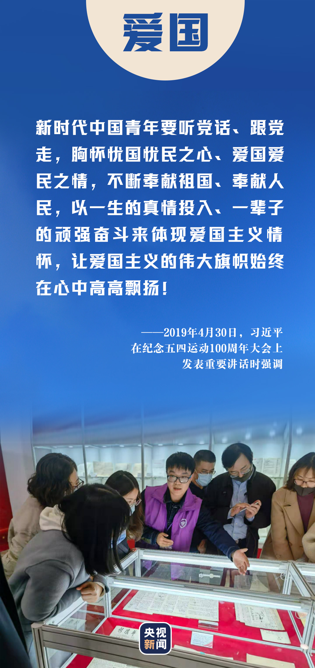 對新時代中國青年來說,熱愛祖國是立身之本、成才之基。